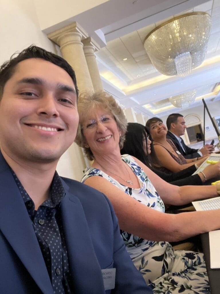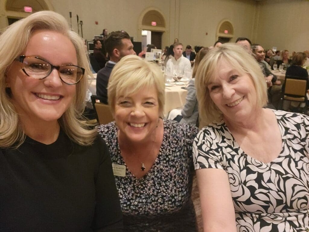 Group selfie at a banquet gathering