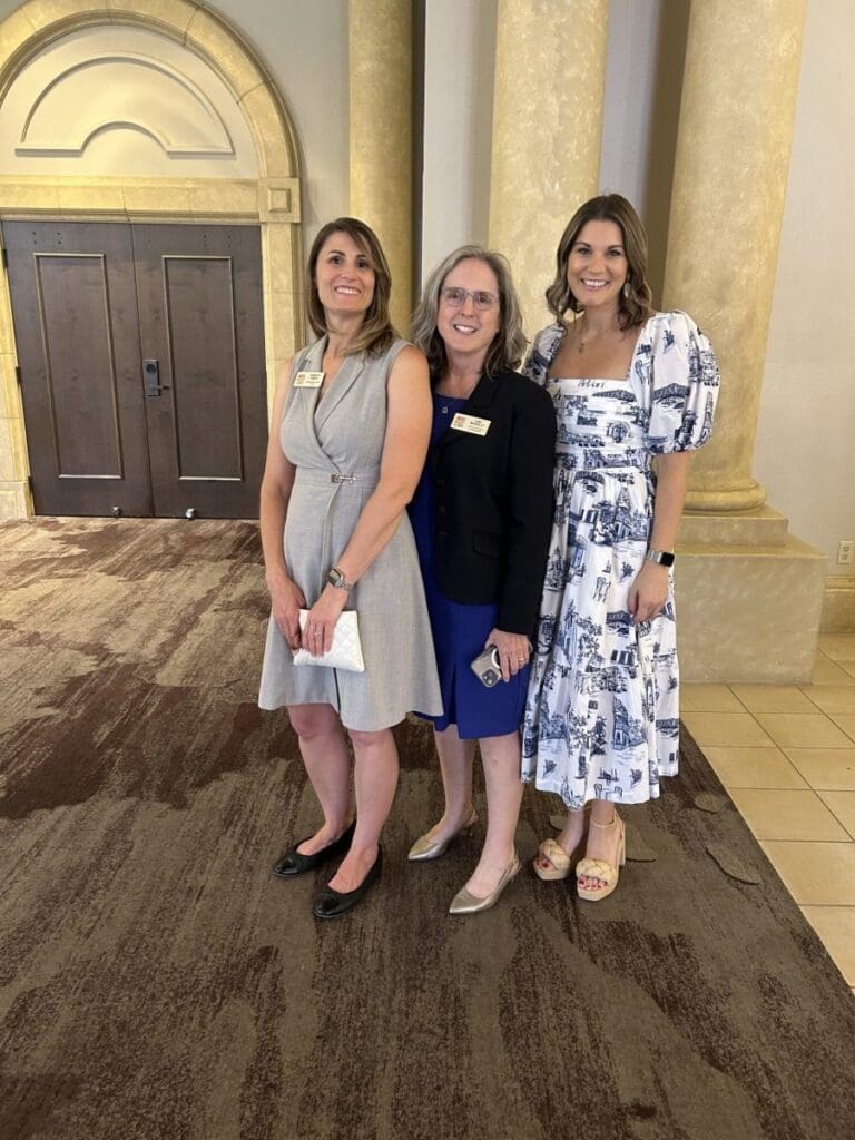 Smiling team behind event registration desk