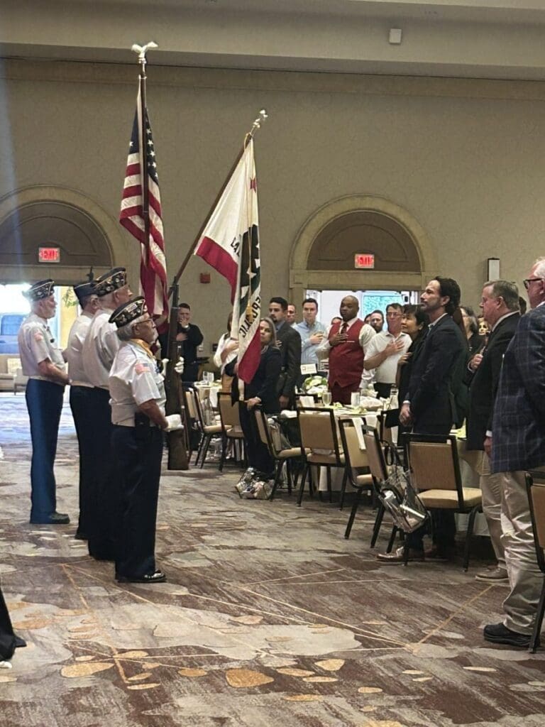 People standing during flag ceremony